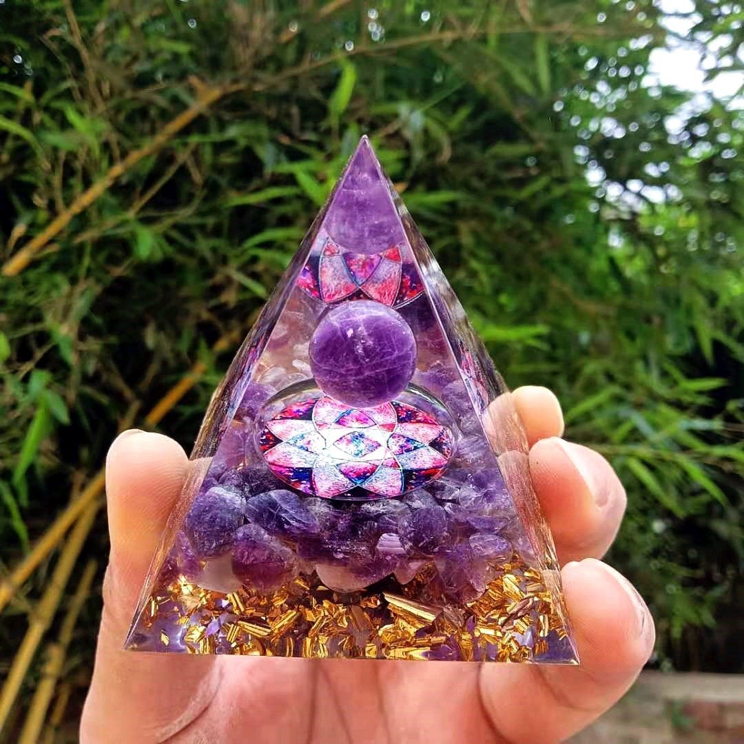 The raw material of this product is natural crystal crushed stone, which is hand-made synthetic crystal crushed stone pyramid; small bubbles and impurities will be generated during the production process, and slight bubbles may appear on the surface, because the crushed stone and crystal used are natural, and the crystal will be inside. There are gaps, bubbles will appear in the process of combining with resin glue, and slight pits will appear on the surface. This is a normal phenomenon. Hand-made, similar to small differences, there is no exactly the same product